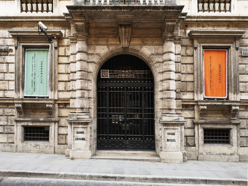 monopoly / 6 flags / 2019 / site specific installation / former headquarters of banca intesa, umbria savings banks / via baglioni, perugia / italy